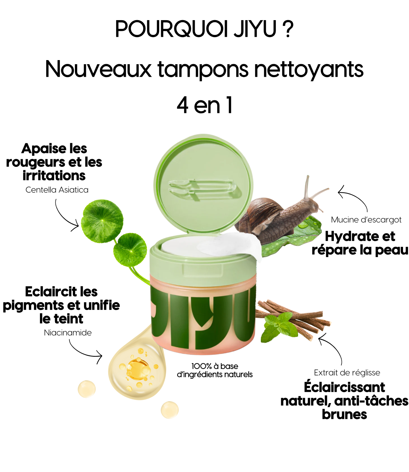 Chaque pot contient 100 pads imbibés, soit environ 1 à 3 mois d’utilisation selon votre routine.