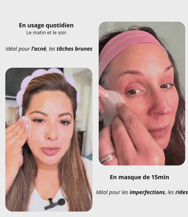 - En toner pad quotidien : passez un pad délicatement sur le visage nettoyé, matin et soir.